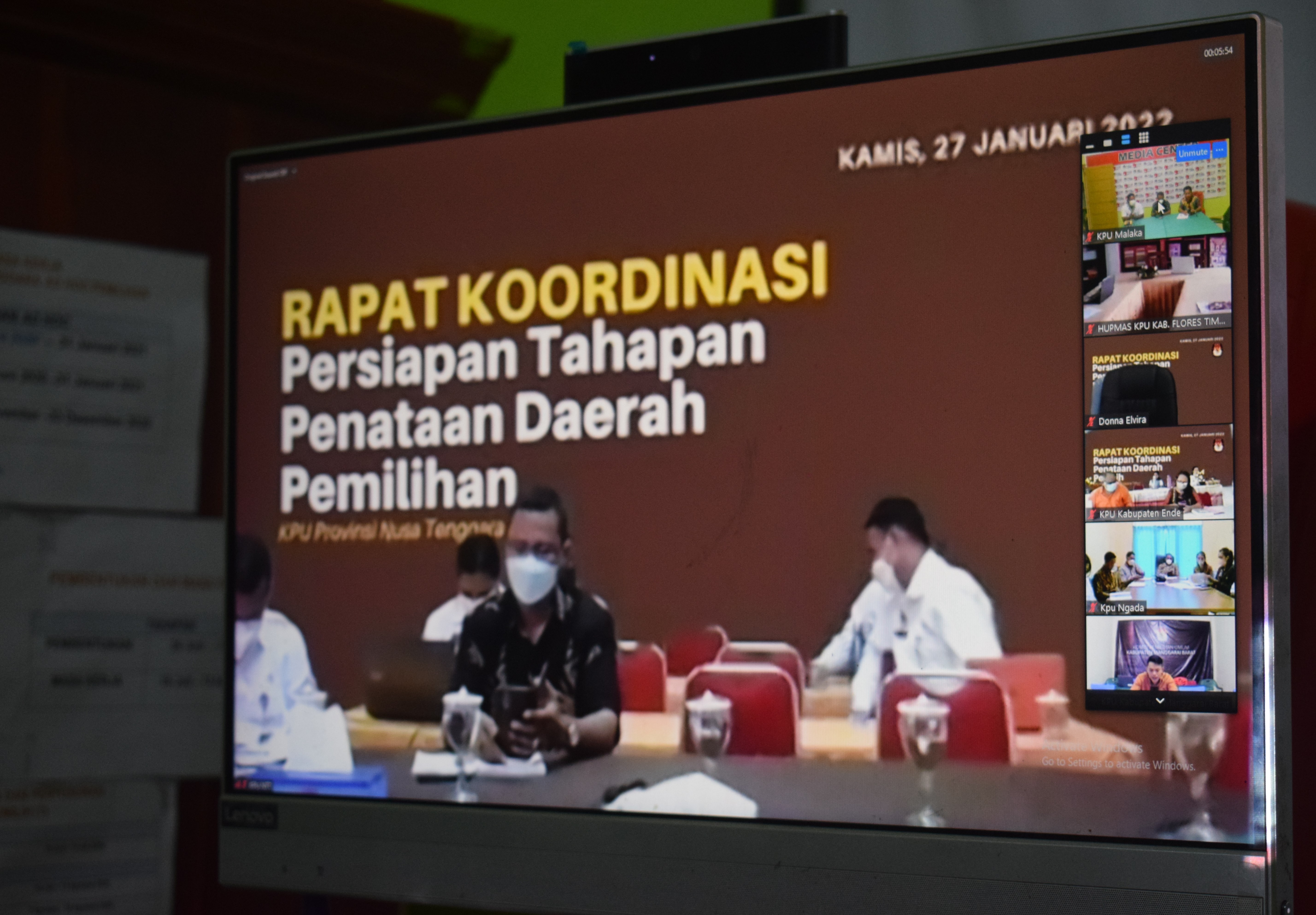 Kamis 27 Januari 2022 Ketua KPU bersama Anggota KPU Divisi Teknis Penyelenggara berserta Kasubag Teknis Kabupaten Malaka mengikuti kegiatan Rapat Koordinasi melalui Zoom meting bersama KPU Provinsi Nusa Tenggara Timur terkait Persiapan Tahapan Penataan Daerah (Dapil) dan alokasi kursi Pemilu Tahun 2024. Dalam Kata Sambutan Ketua KPU Provinsi Nusa Tenggara Timur Thomas Dohu menyampaikan Rapat koordinasi ini dilakukan dengan tujuan sebagai upaya penguatan kelembagaan KPU Kabupaten/Kota untuk mempersiapkan diri menyongsong Pemilu Tahun 2024. Dalam Rapat Koordinasi ini juga KPU Provinsi memberikan Materi -Materi kepada KPU Kabupaten/kota terkait dasar dasar pelaksanaan penataan Daerah Pemilian (DAPIL)yaitu: